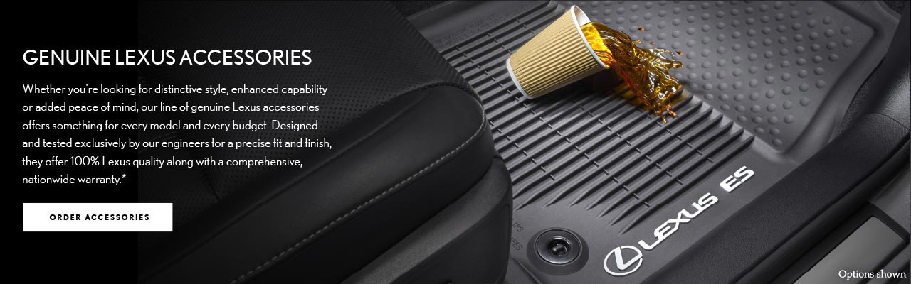 Whether you're looking for distinctive style, enhanced capability or added peace of mind, our line of genuine Lexus accessories offers something for every model and every budget. Designed and tested exclusively by our engineers for a precise fit and finish, they offer 100% Lexus quality along with a comprehensive, nationwide warranty.*